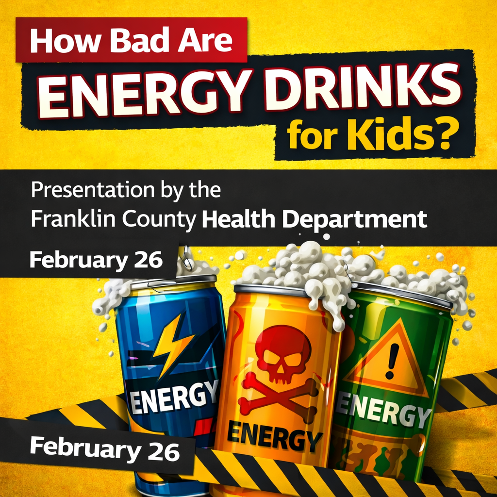 The Franklin County Health Department will be present How Bad Are Energy Drinks for Kids to our middle schoolers on February 26 during school hours.